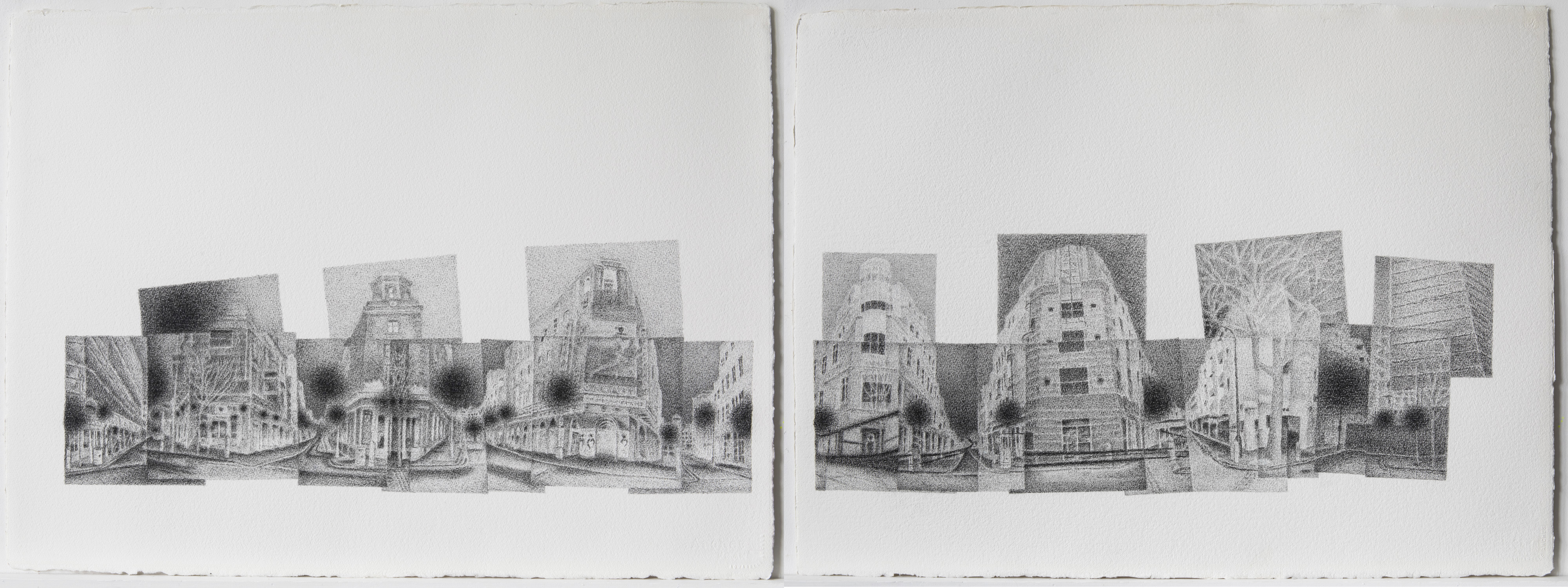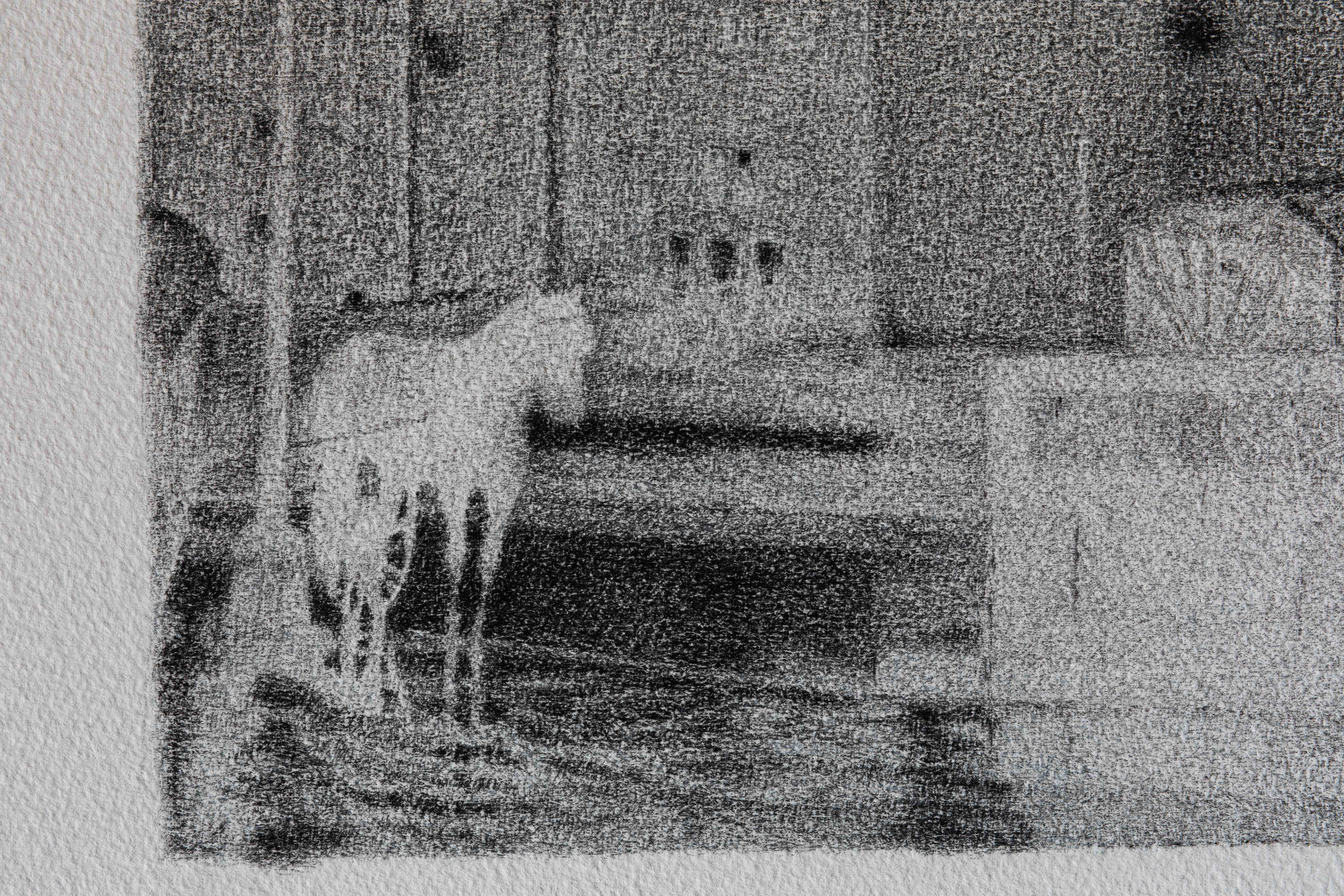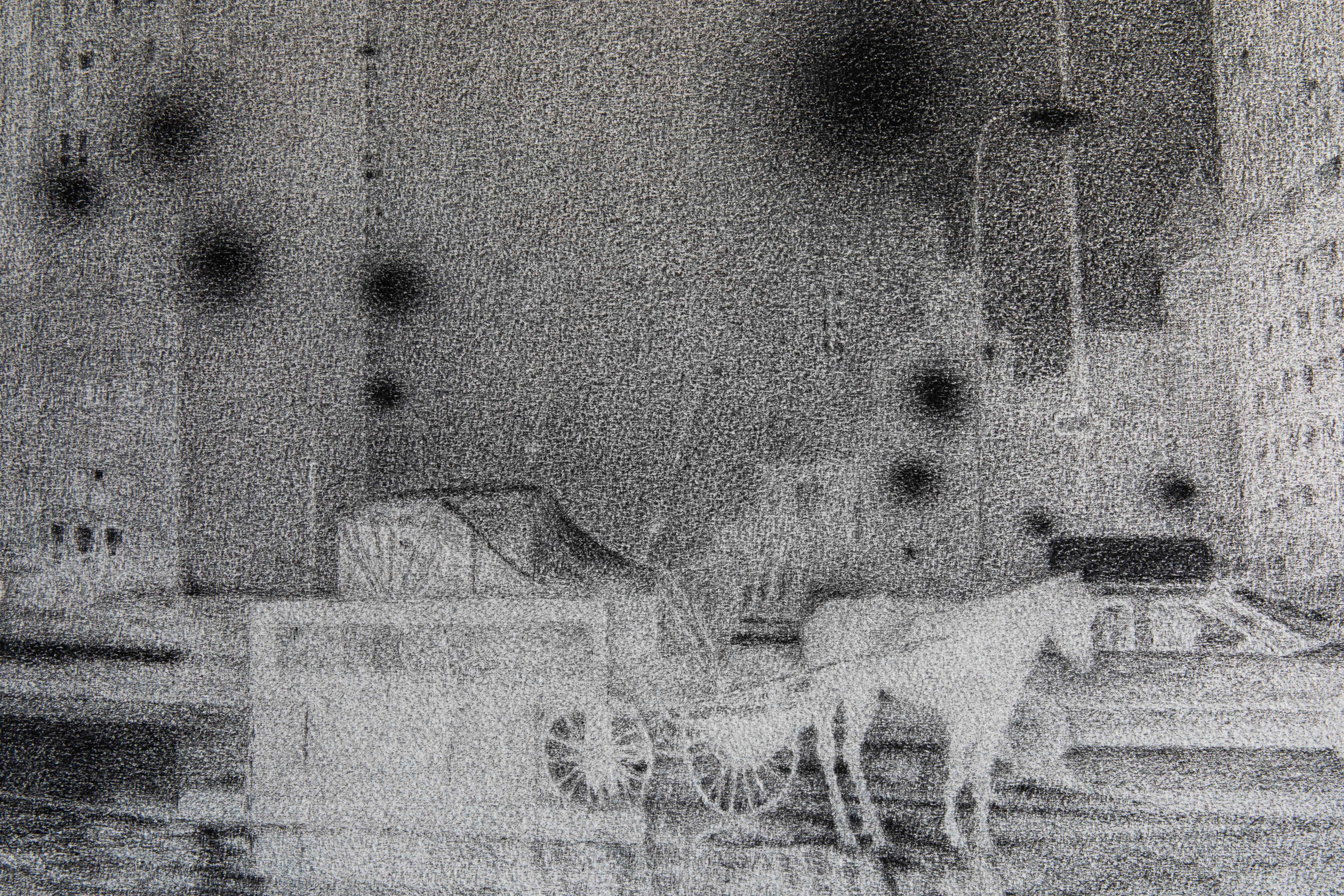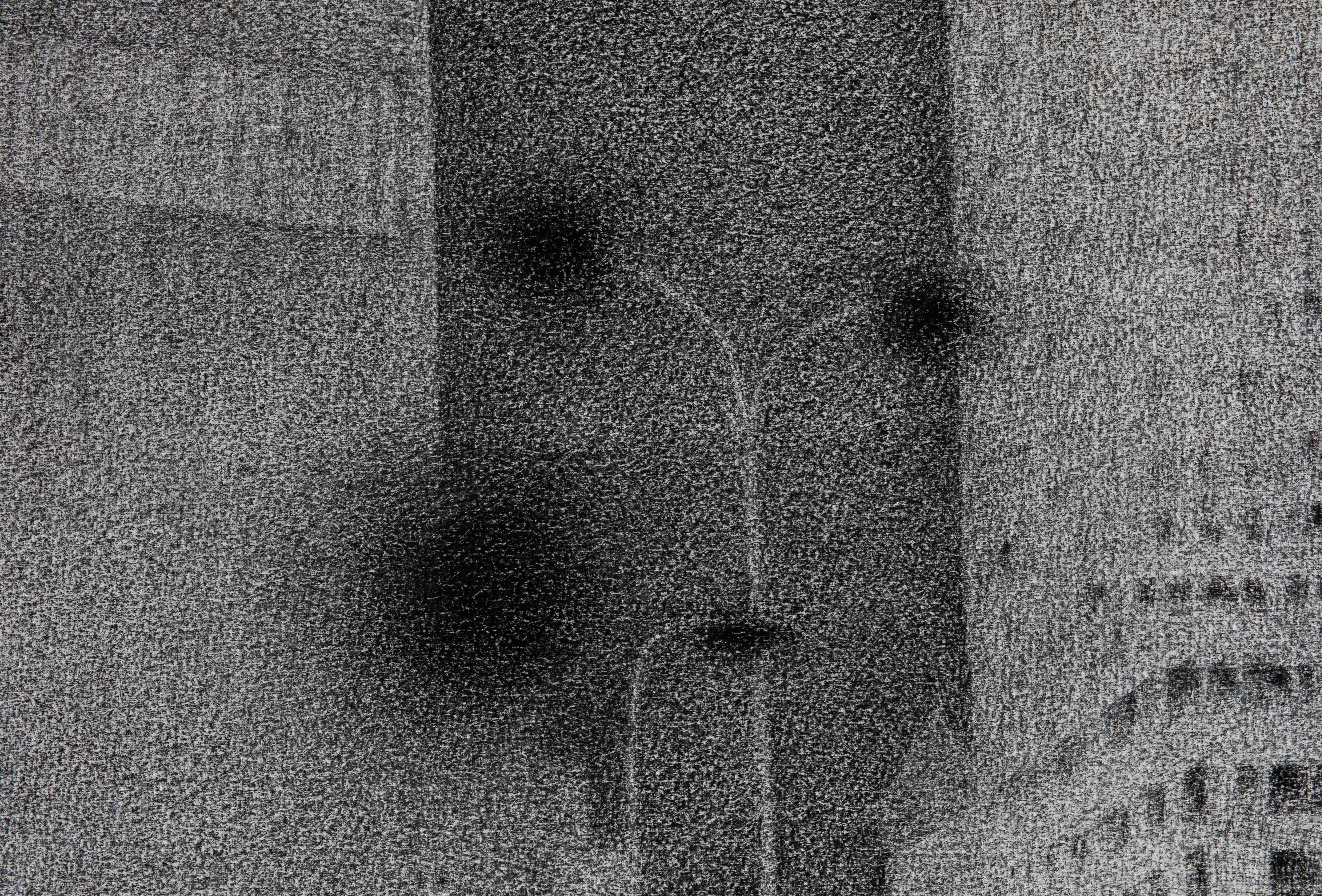 Evidence of Absence is a series of drawings that began in 2011 and has continued to evolve. The inspiration comes from Marcel Proust’s idea that memories function like forgotten negatives; when triggered by the senses (or the developer), they are brought back into the light and become visible once more. The technique I use involves meticulously re-drawing my old negatives with tiny lines and hatching them on rough watercolor paper. This process is quite labor-intensive, yet it captures the random texture reminiscent of film grain. Once the drawing is complete, I photograph it and convert it back into a positive using a click in Photoshop. The final digital image is then printed as an edition of Giclée Prints. Throughout this work, I explored the contrasts between original and edited versions, slow and fast, positive and negative, and analog and digital.