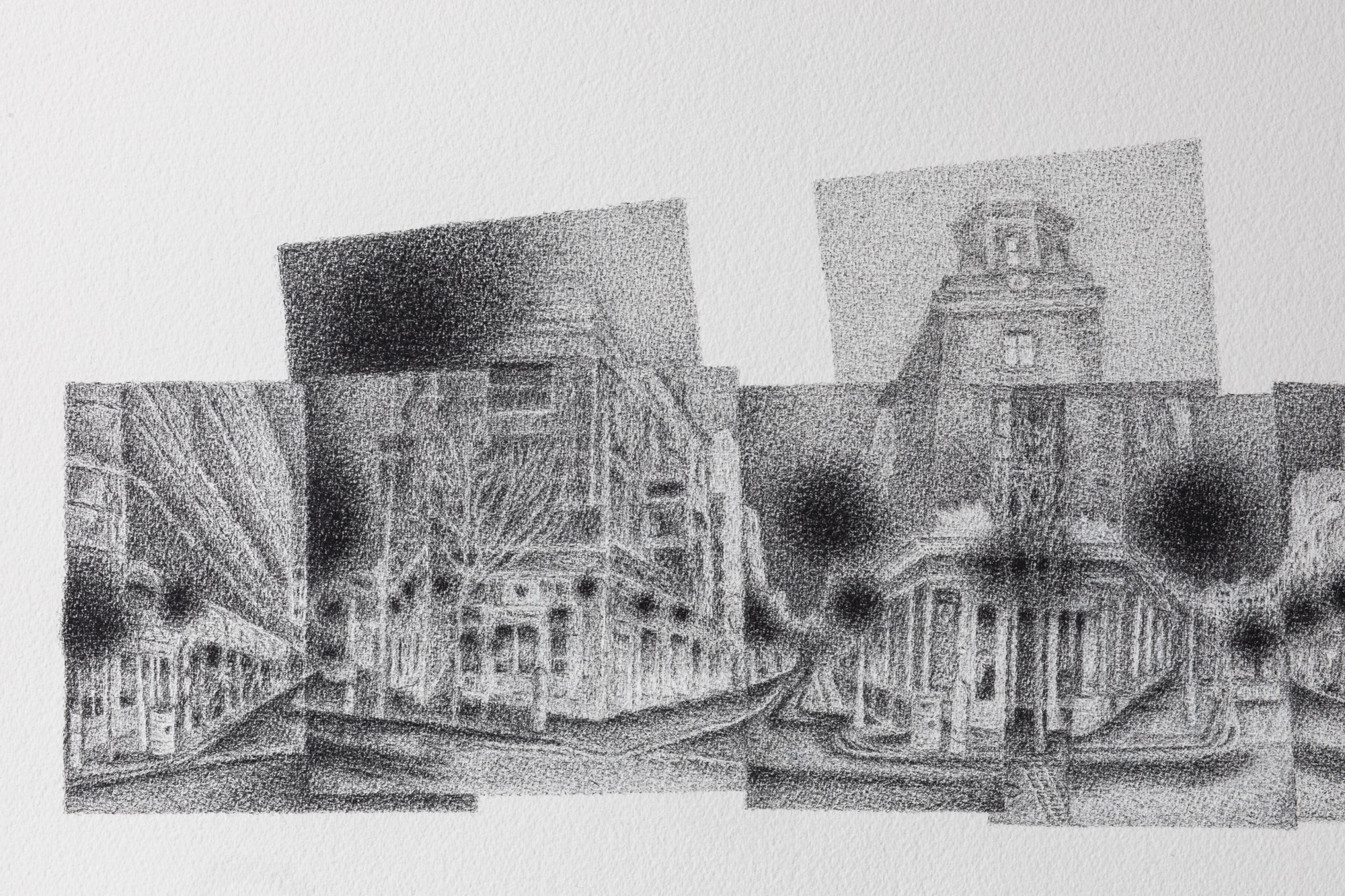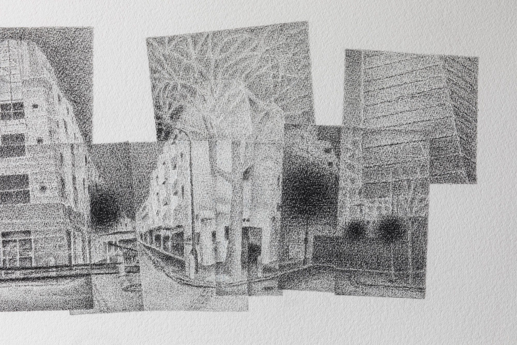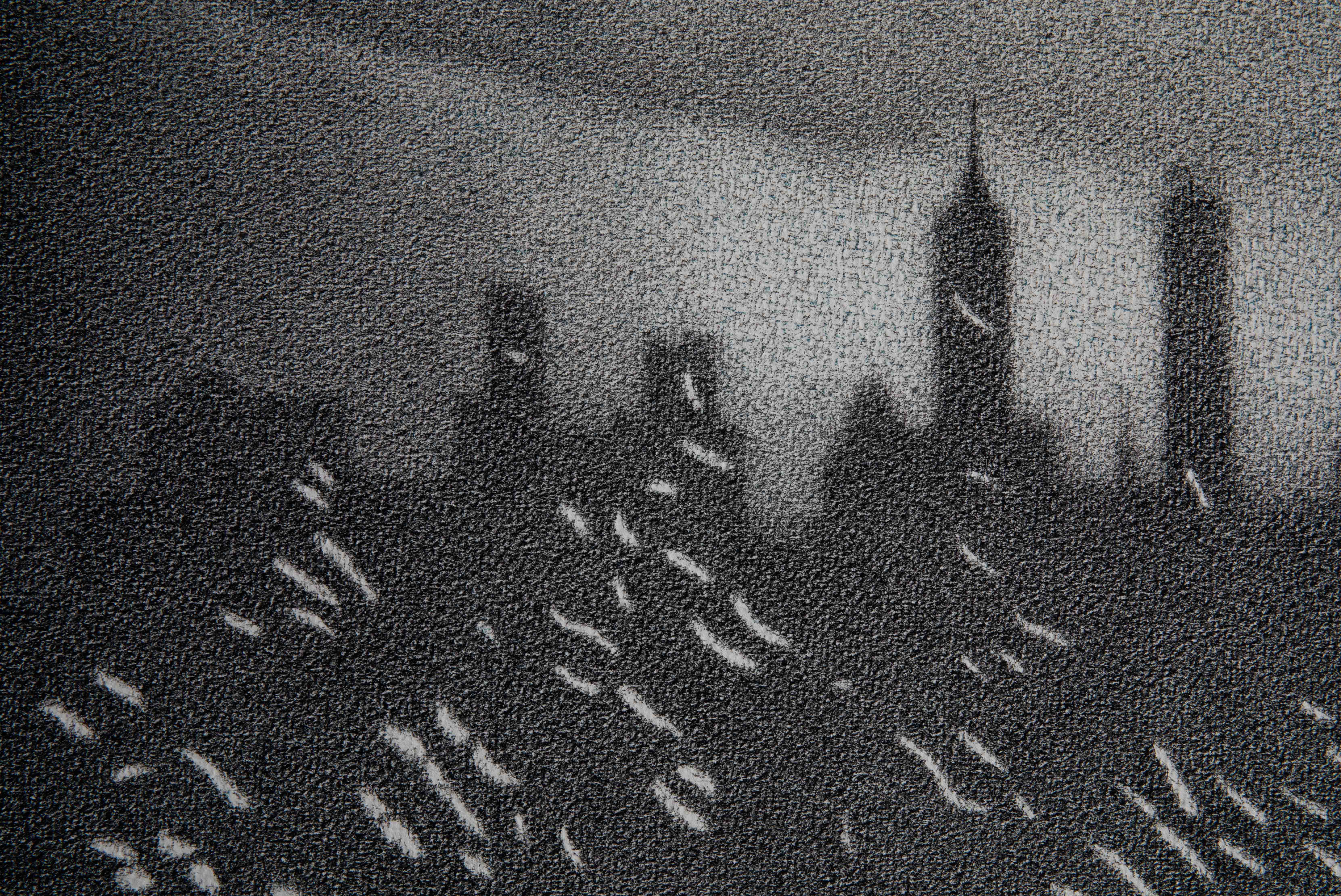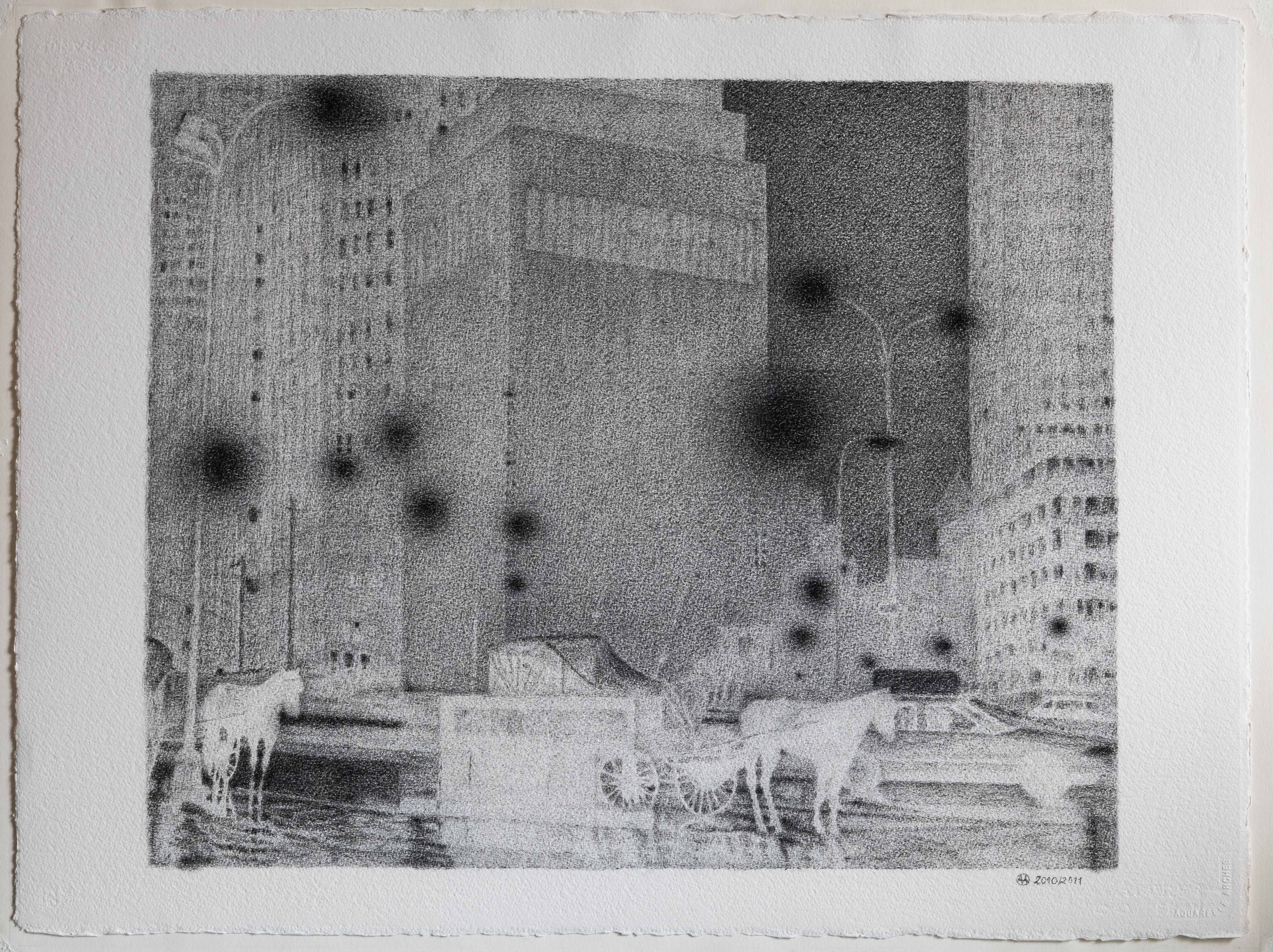 Evidence of Absence is a series of drawings that began in 2011 and has continued to evolve. The inspiration comes from Marcel Proust’s idea that memories function like forgotten negatives; when triggered by the senses (or the developer), they are brought back into the light and become visible once more. The technique I use involves meticulously re-drawing my old negatives with tiny lines and hatching them on rough watercolor paper. This process is quite labor-intensive, yet it captures the random texture reminiscent of film grain. Once the drawing is complete, I photograph it and convert it back into a positive using a click in Photoshop. The final digital image is then printed as an edition of Giclée Prints. Throughout this work, I explored the contrasts between original and edited versions, slow and fast, positive and negative, and analog and digital.