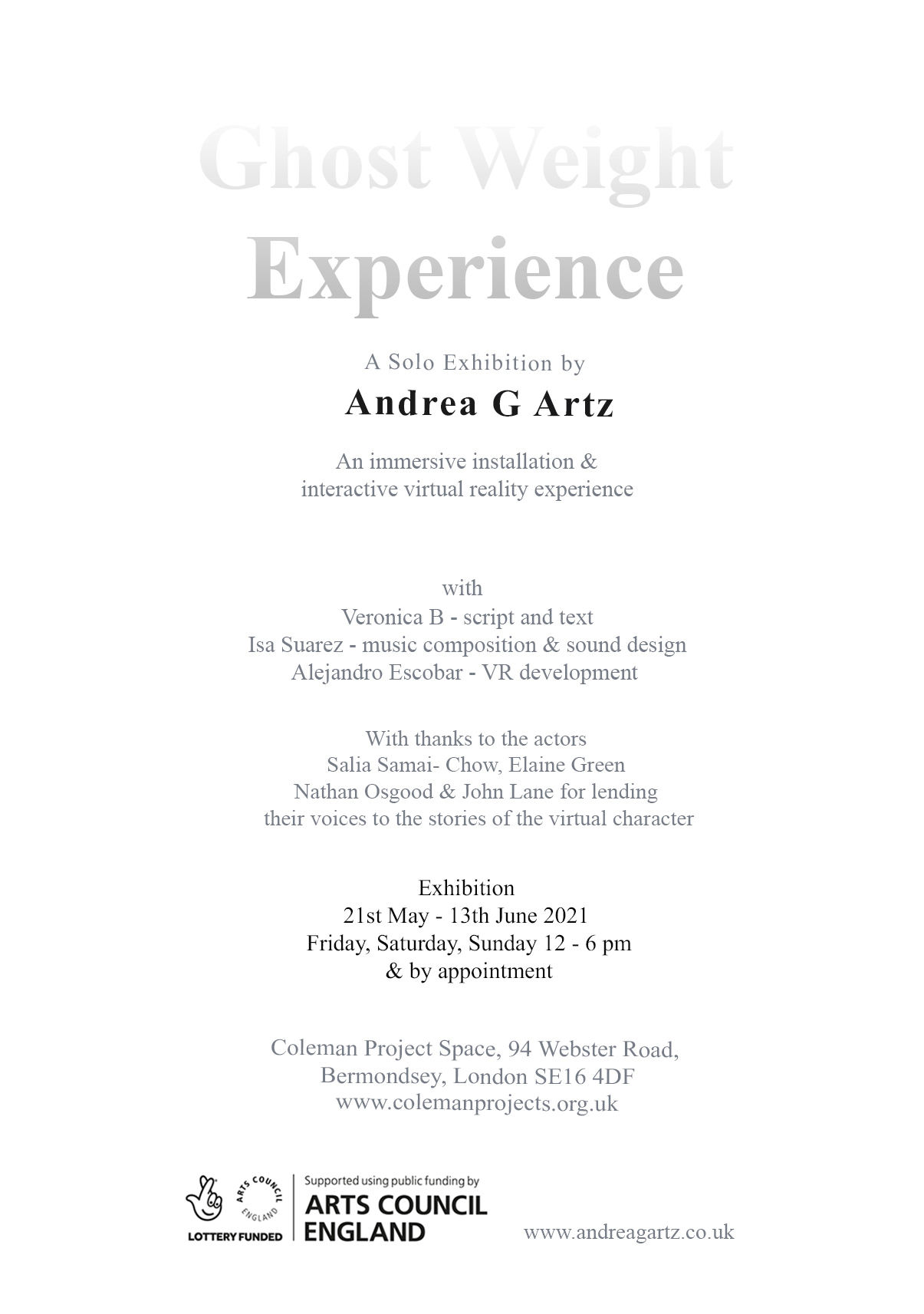 • Ghost Weight Experience, Coleman Project Space