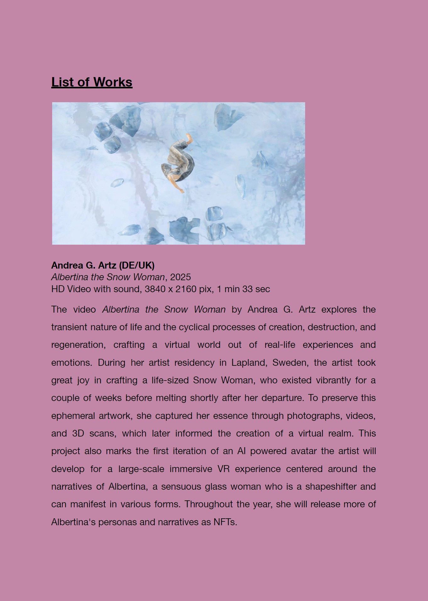 • Albertina the Snow Woman, Video