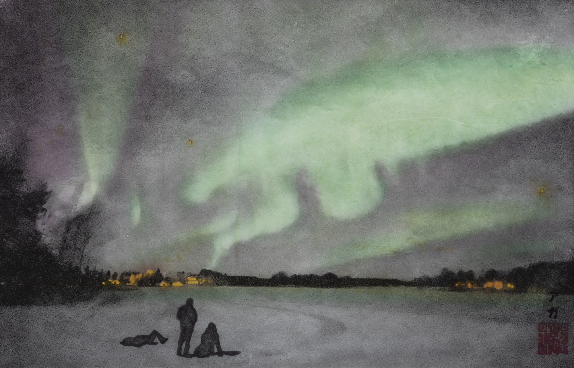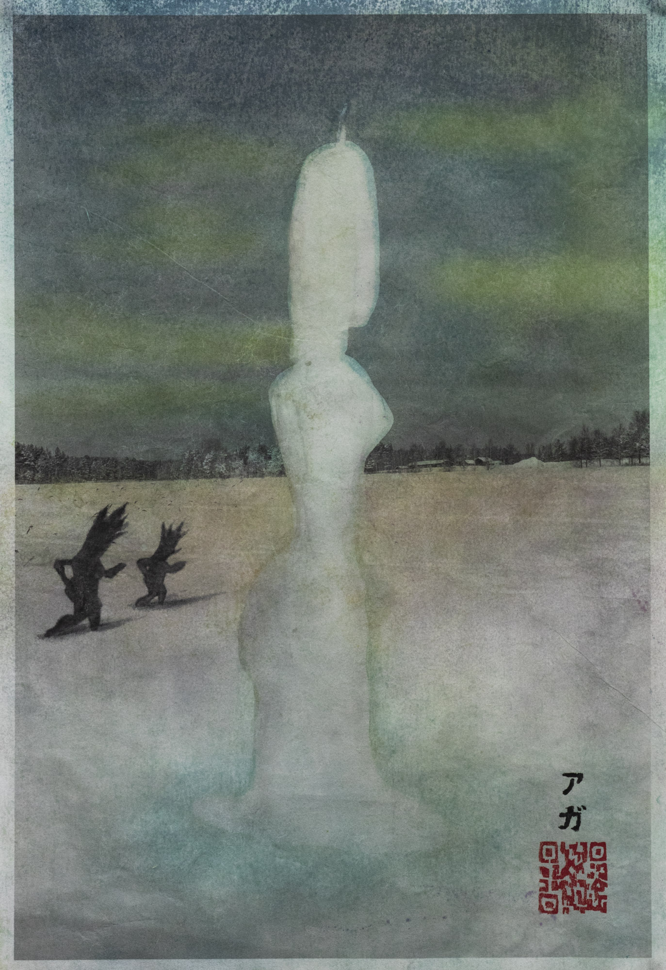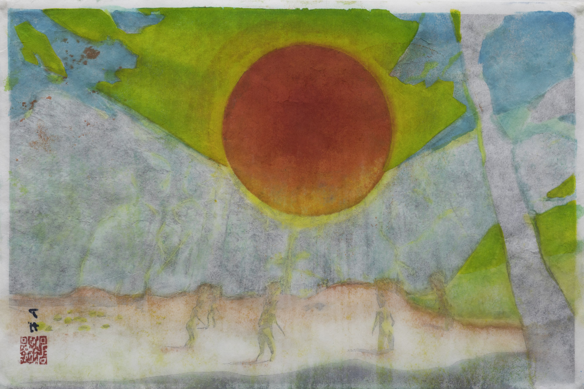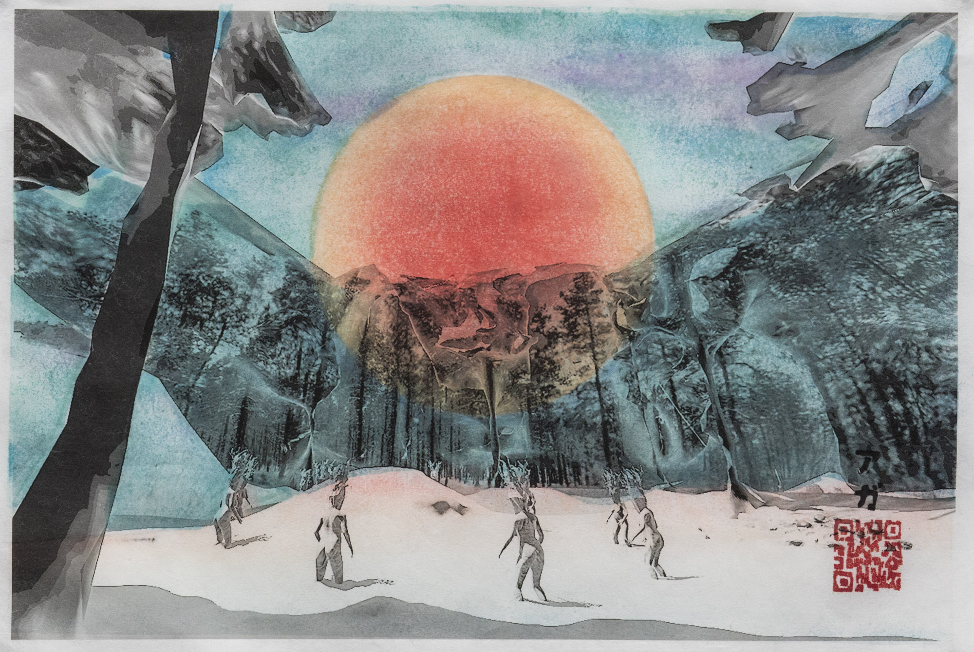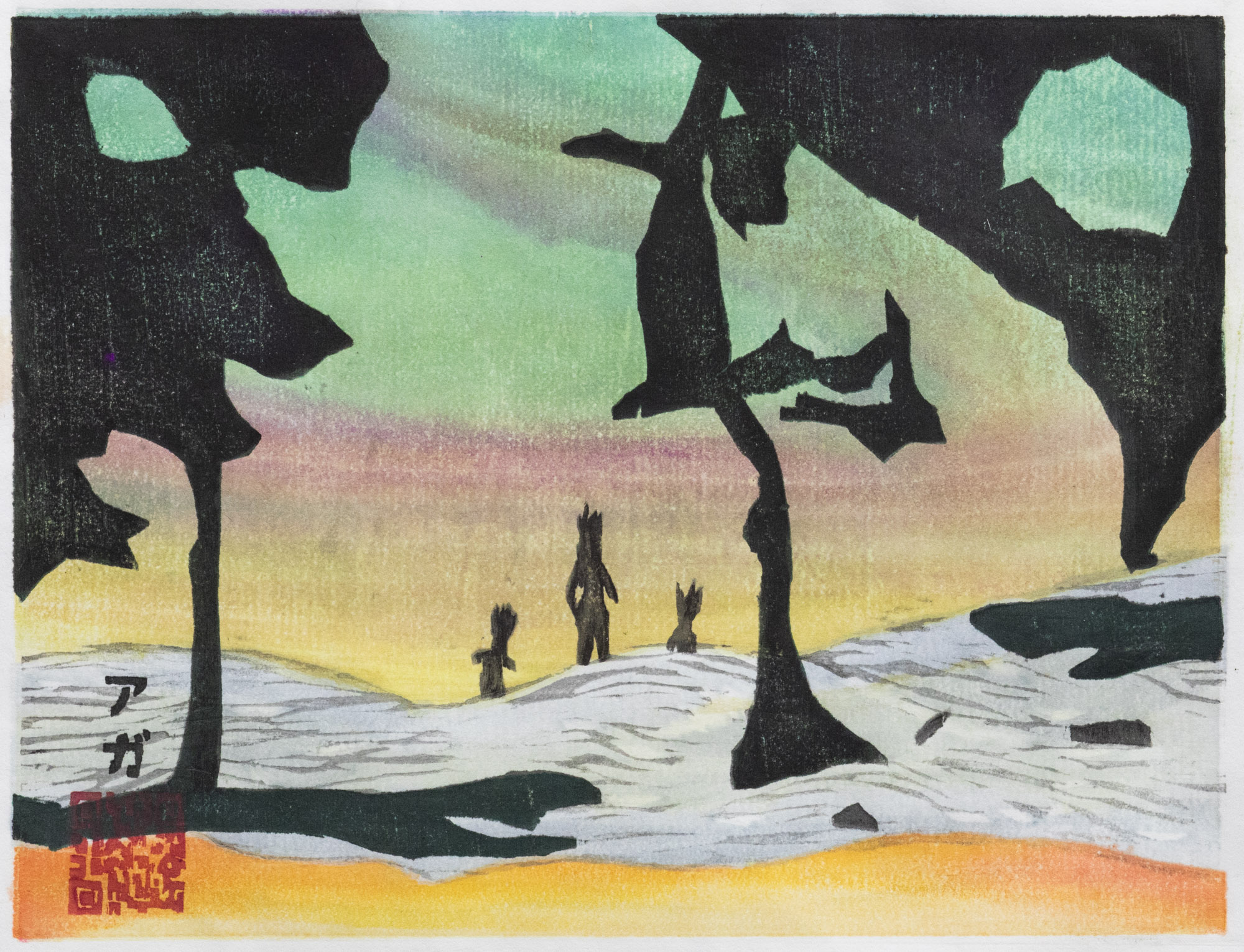A series of Japanese Woodcuts on Awagami Kozo Select Paper that transforms my digital imaginaries into physical objects. When I immerse myself in my speculative virtual reality worlds, I take numerous photographs. I have the freedom to choose angle, frame, and perspective just like a photographer in the real world. Afterward, I print on thin Awagami Murakumo Kozo Select Paper. In my studio, I employ Mokuhanga, the traditional Japanese Woodcut technique, to carve woodblocks and then print on both sides with water-based colors. Throughout the process, I rely on intuition and add new elements to the print. The resulting prints combine virtual creations with traditional woodcut print.